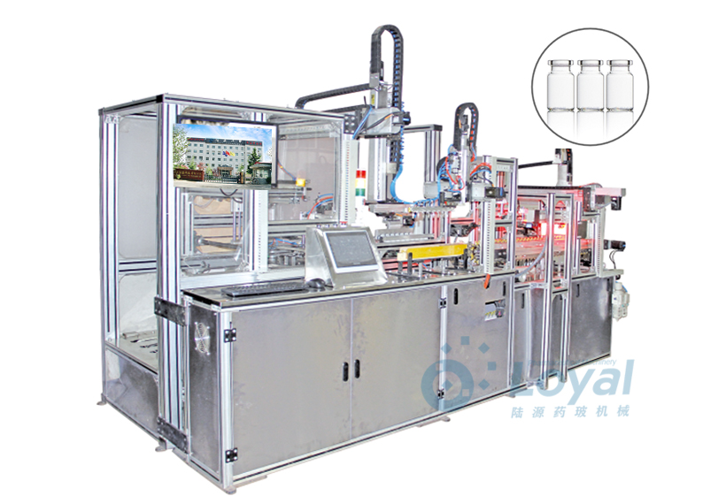 西林瓶生產(chǎn)線包括:自動上管、自動成型、經(jīng)機械手轉(zhuǎn)換至前端檢測線(也叫生產(chǎn)管控)、檢測線檢測的項目:1、瓶口內(nèi)外徑 2、瓶身長短 3、瓶身外徑 4、瓶口邊厚 5、瓶底內(nèi)凹尺寸檢測;經(jīng)檢測后的合格品再用機械手夾盤轉(zhuǎn)換至退火爐網(wǎng)帶上,經(jīng)高溫減除應力后再降溫,通過氣動吸盤將回火后的小瓶轉(zhuǎn)換至后端檢測線,后端檢測(也是重檢也叫終檢),經(jīng)后端拍照檢測項目